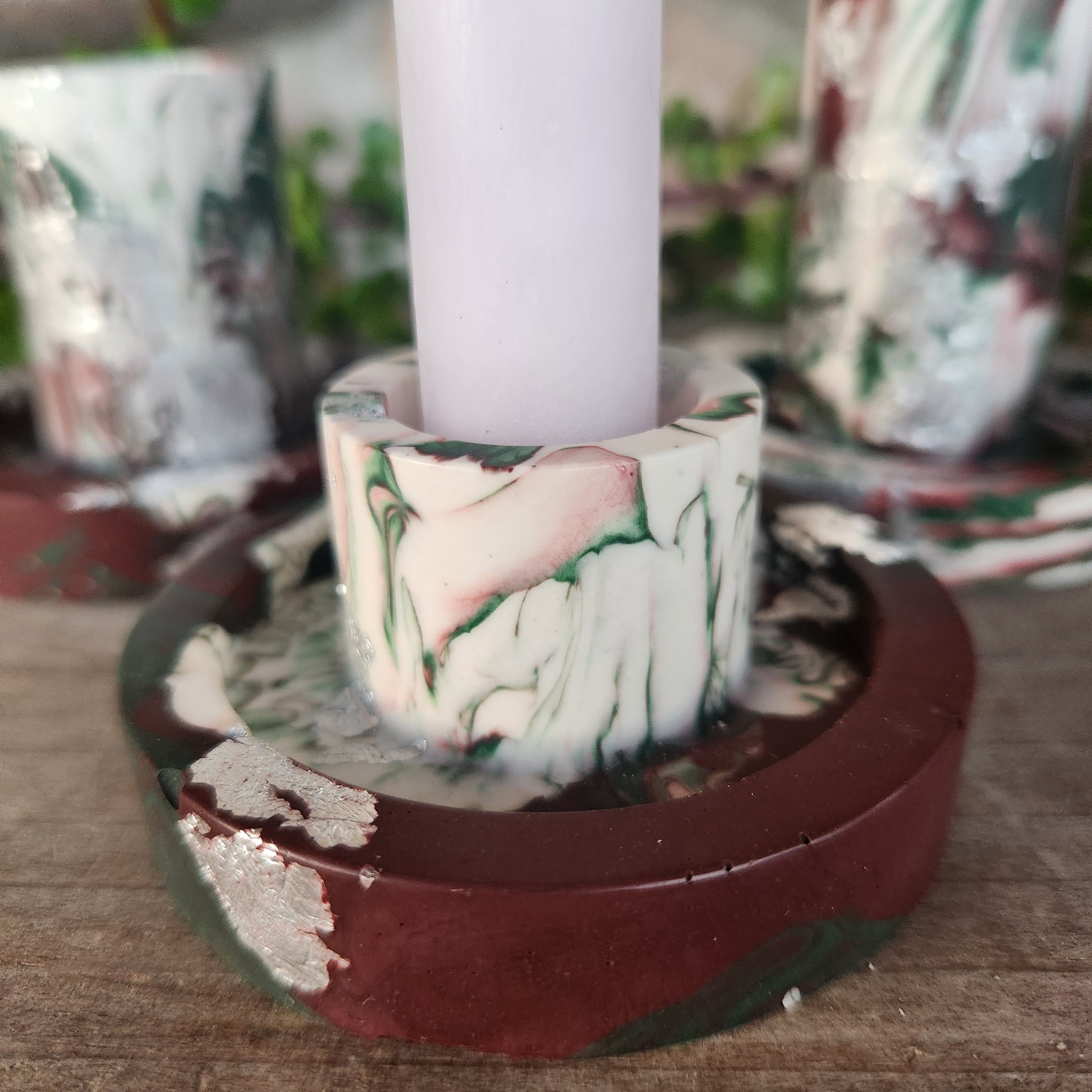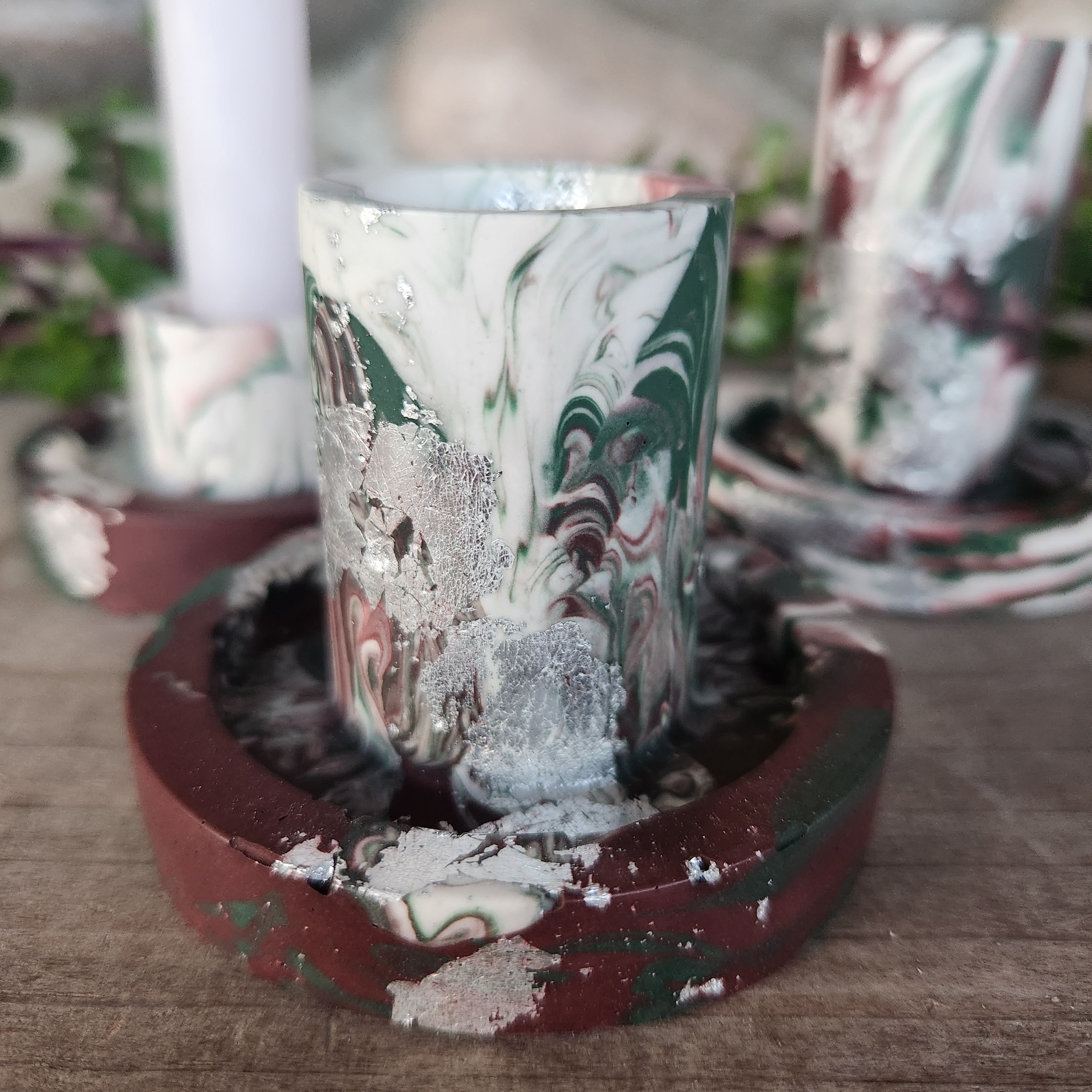 All new to Madpotters - Jesmonite Candlestick Holders! This set of three is perfect for your taper candles and has an addition of metallic flake for extra glam.