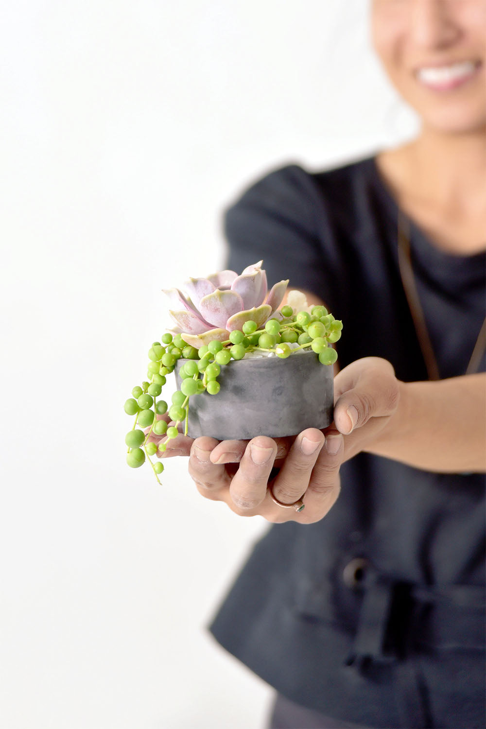 Give your succulents a one-of-a-kind home with our cement planter kit. Using recyclable molds (including a silicone mold designed exclusively for this workshop), artist Christie Lothrop guides you through hand-mixing and pouring methods so you can line your windowsill with cement plant pots.